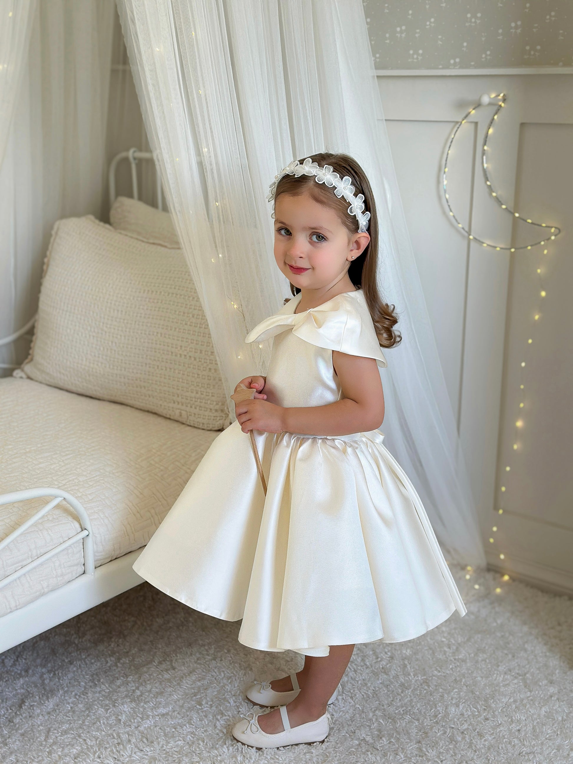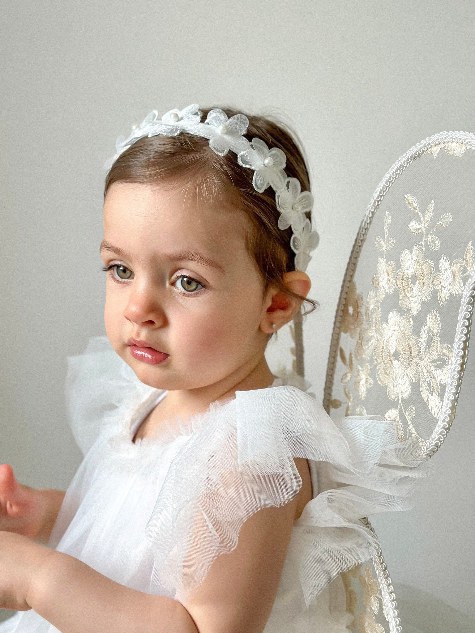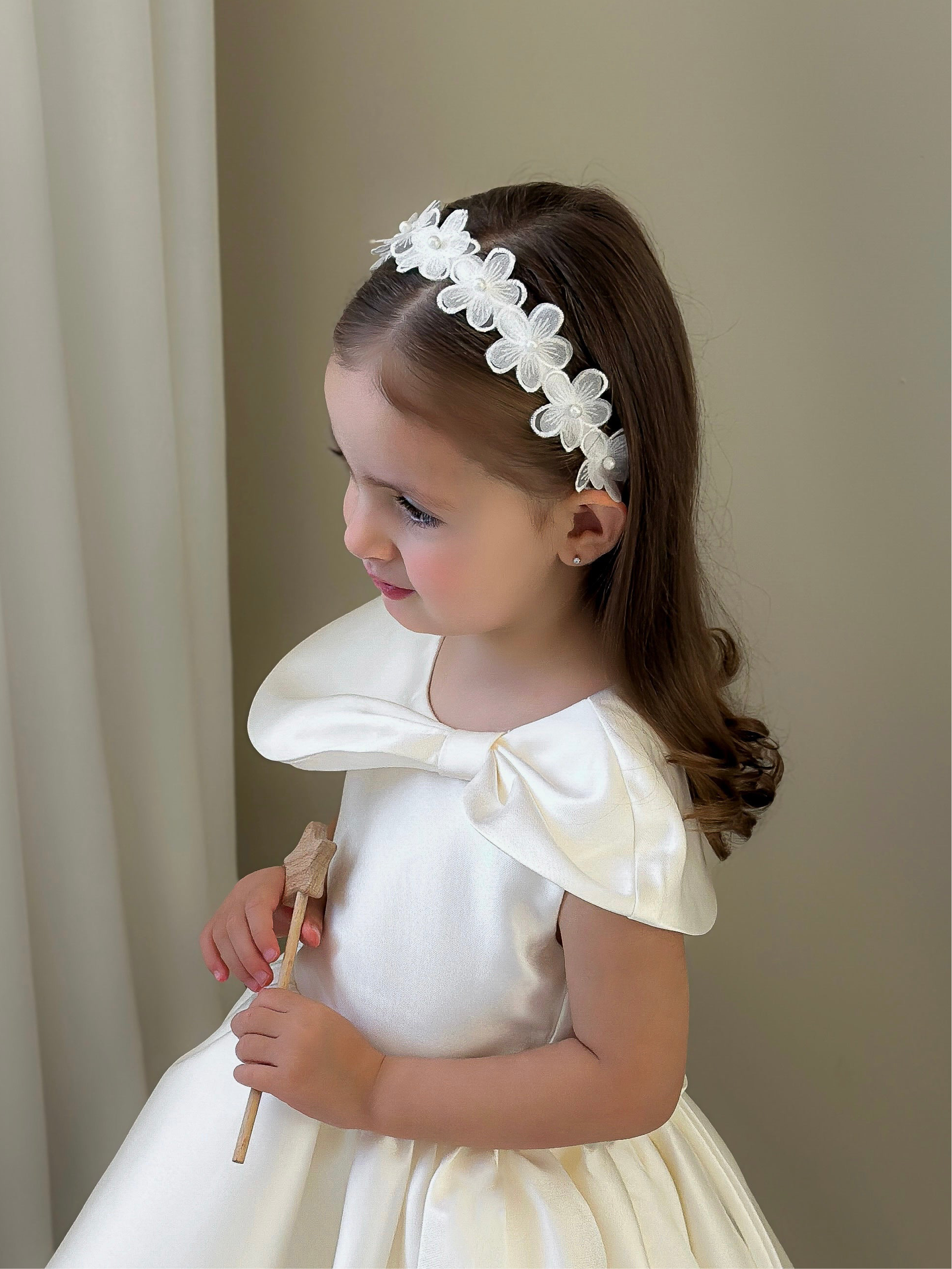 Handcrafted on a satin covered alice band. Suitable from approx 12 months old.