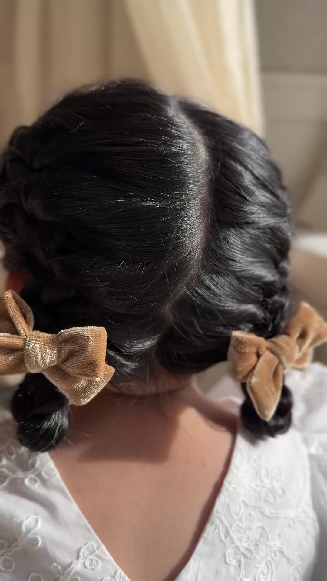 Classic Pigtail Bows | Golden Tan Velvet