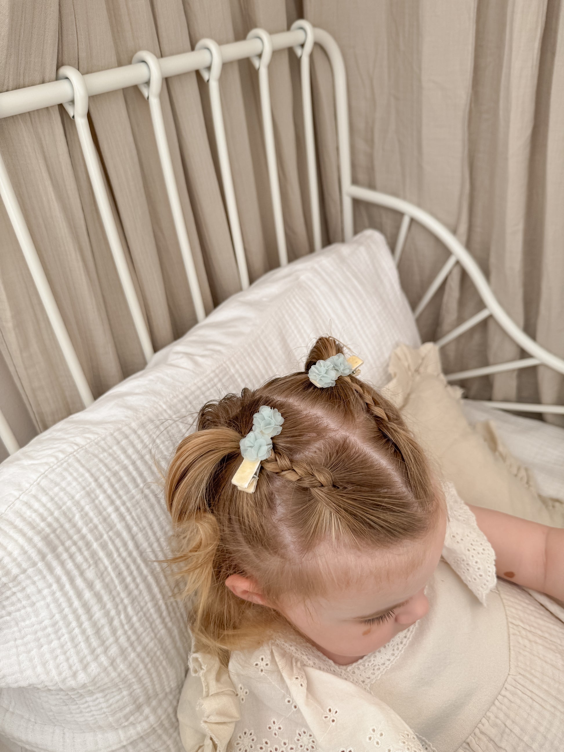 Topknots: we recommend spot cleaning these accessories only when necessary. Use warm water only and leave to air dry. Store all pieces out of direct sunlight.