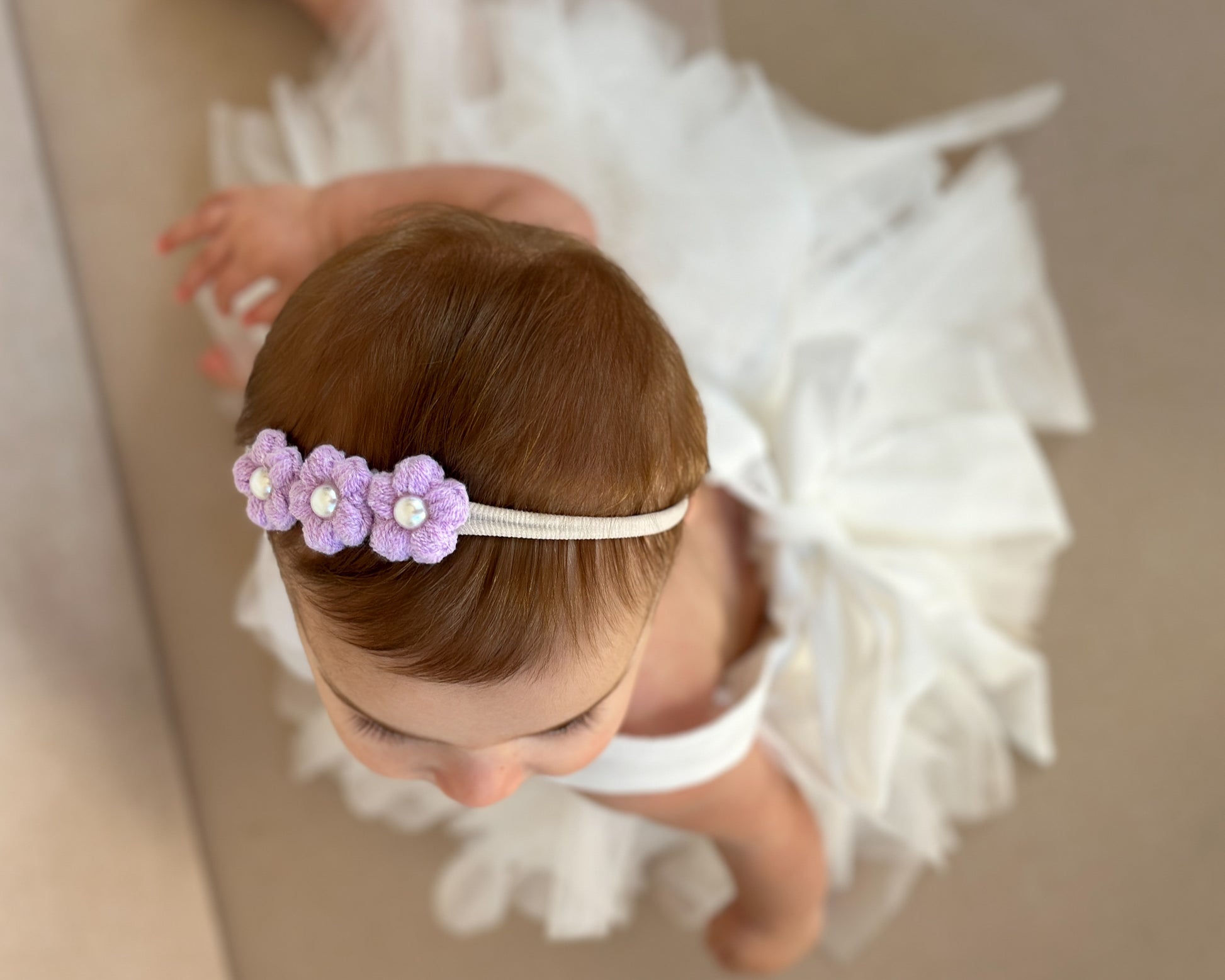 Handcrafted on a dainty nylon headband - colour ‘Vanilla’. The nylon bands we use as the base for all of our dainty headband products are manufactured in the UK and are of the highest quality. Made with comfort in mind and designed and spring back use after use.