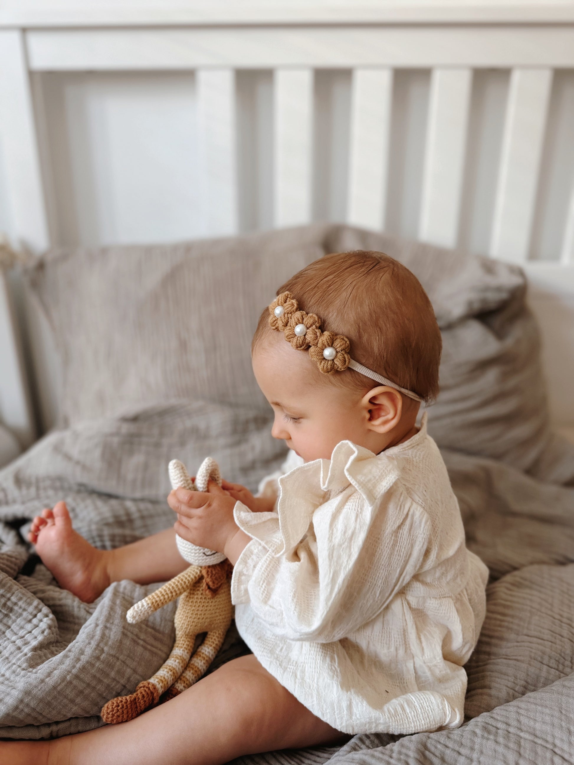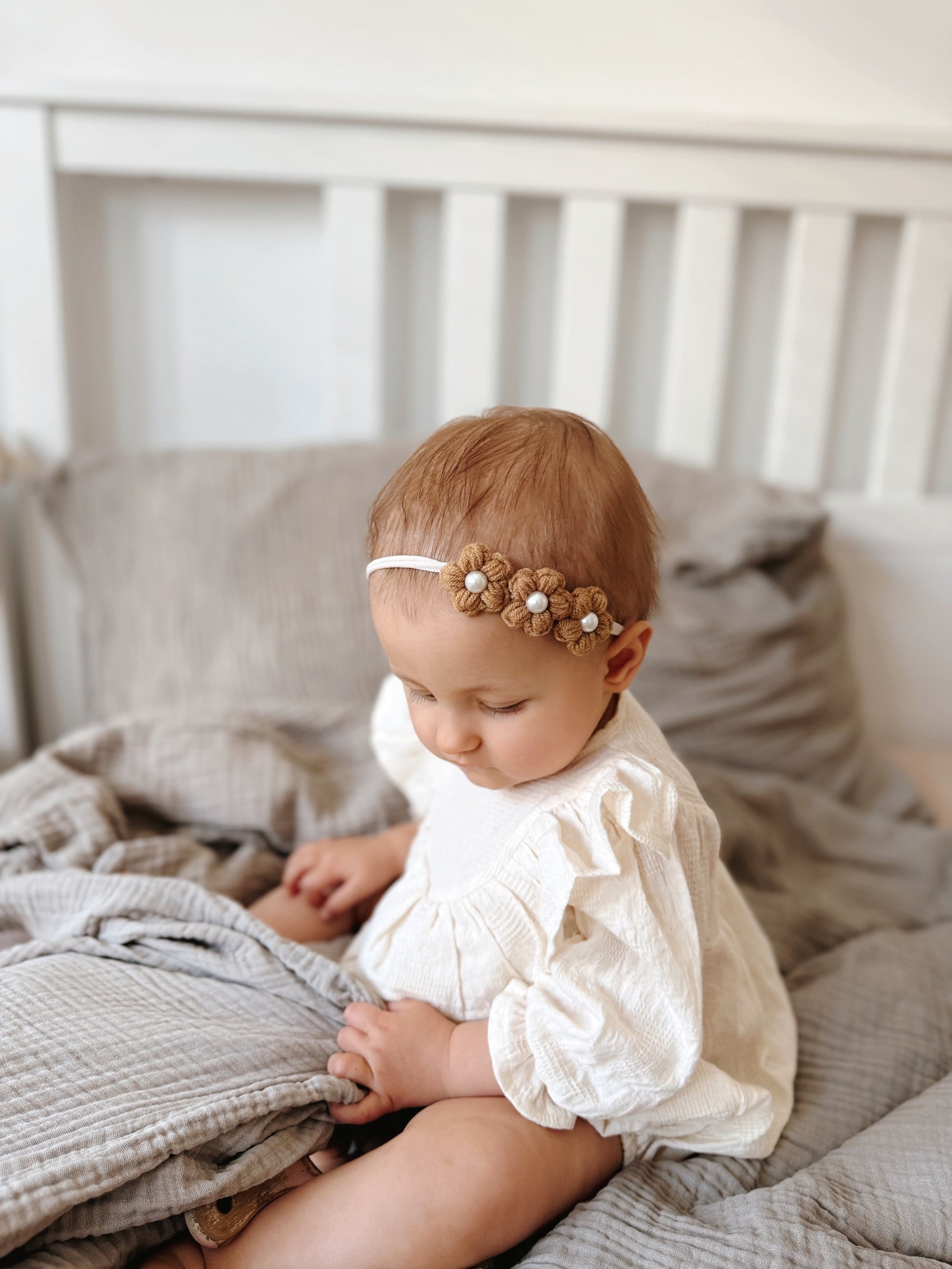 Handcrafted on a dainty nylon headband - colour ‘Vanilla’. The nylon bands we use as the base for all of our dainty headband products are manufactured in the UK and are of the highest quality. Made with comfort in mind and designed and spring back use after use.