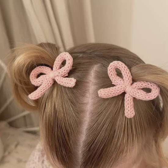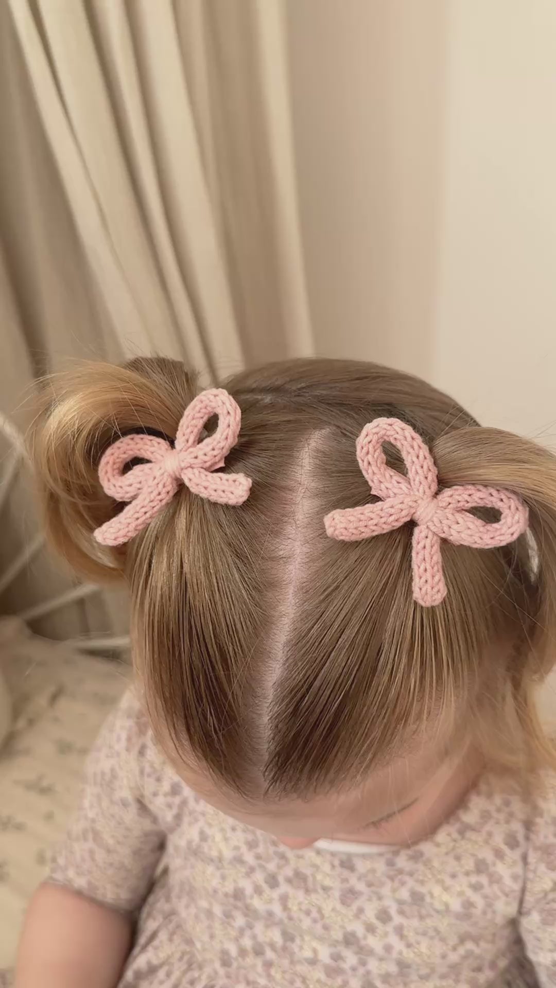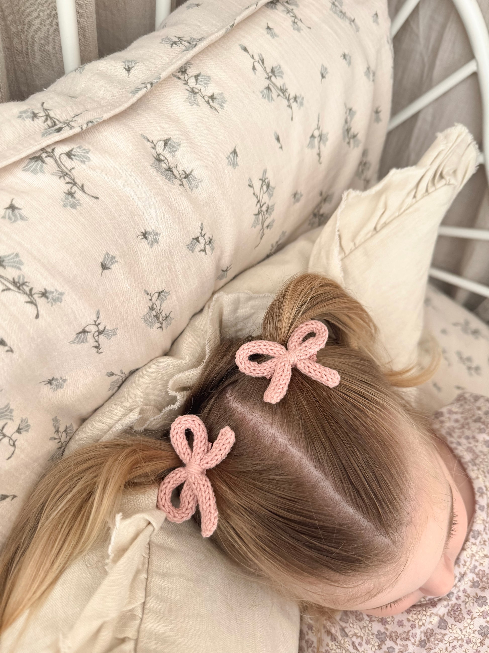 Dainty Knit Pigtail Bows | Rosebud Pink