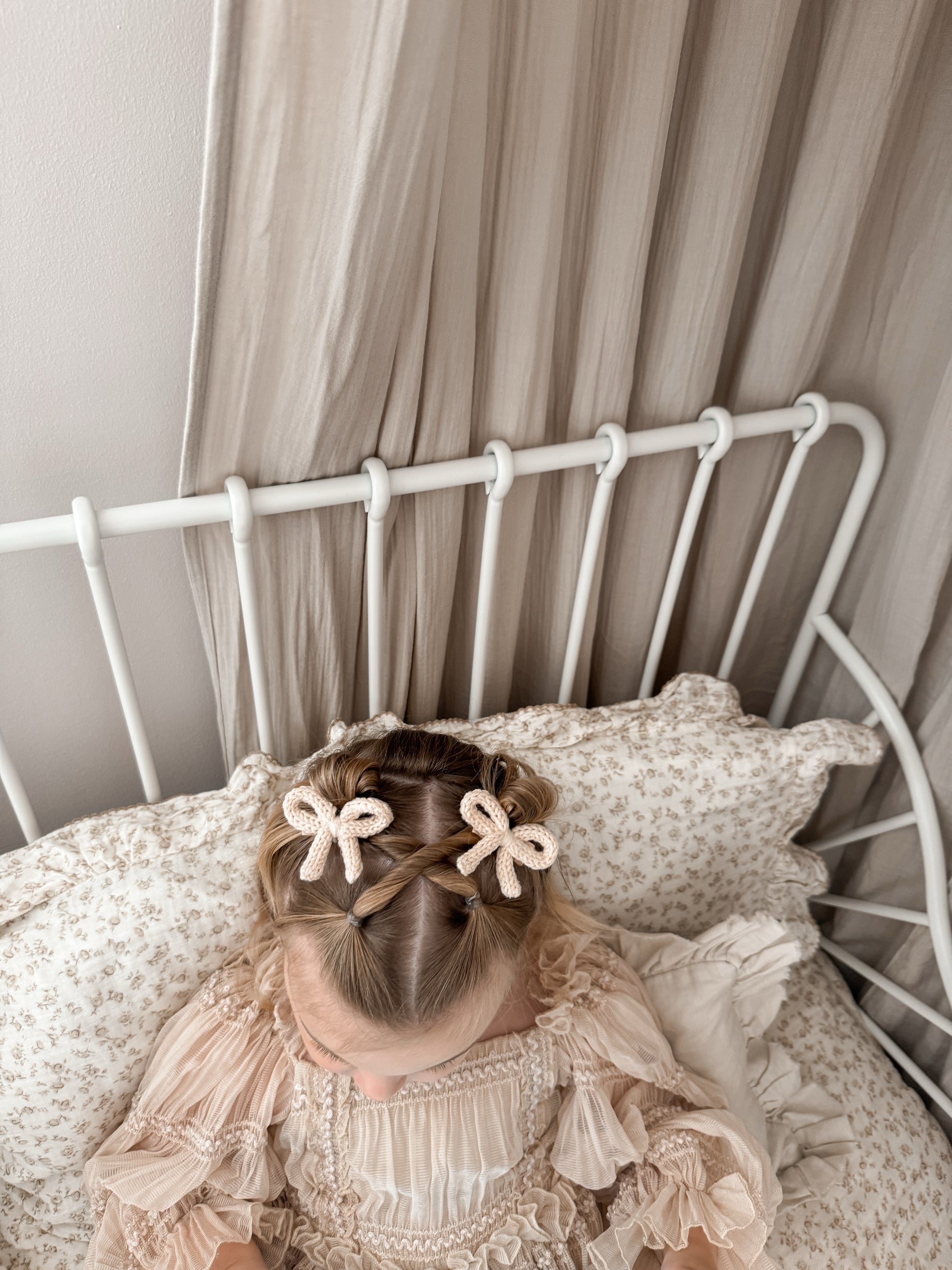 We take the greatest of care when making each and every one of our pieces. However, some products contain small embellishments, so little hands should be kept from handling our accessories to minimise the chance of parts coming loose.