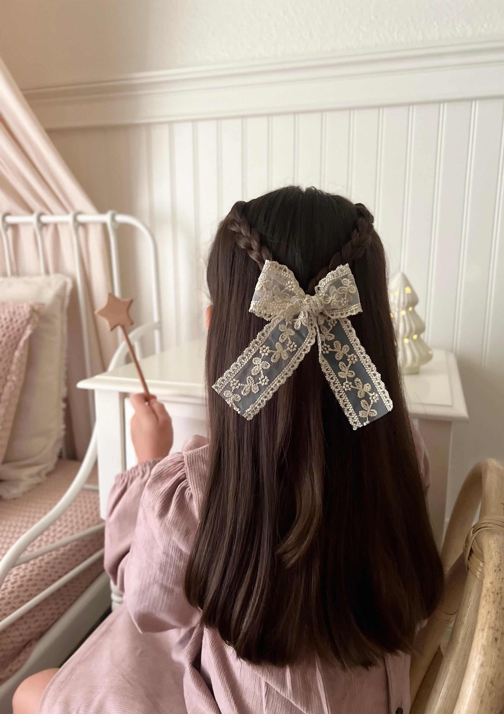 Bows & Clips: we recommend spot cleaning these accessories only when necessary. Use warm water on a damp cloth only, and leave to air dry. Never get any metal parts wet, as this will cause rust and discolouration. Store all pieces out of direct sunlight.