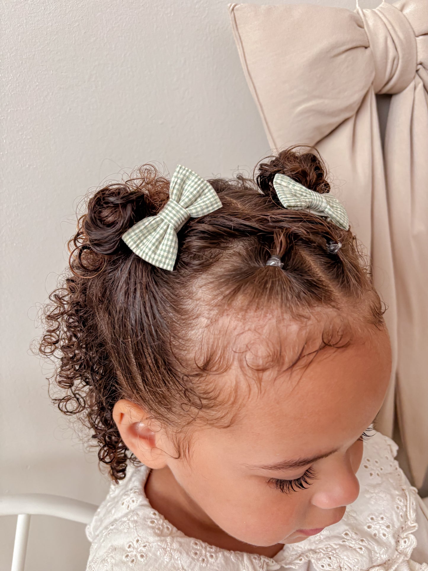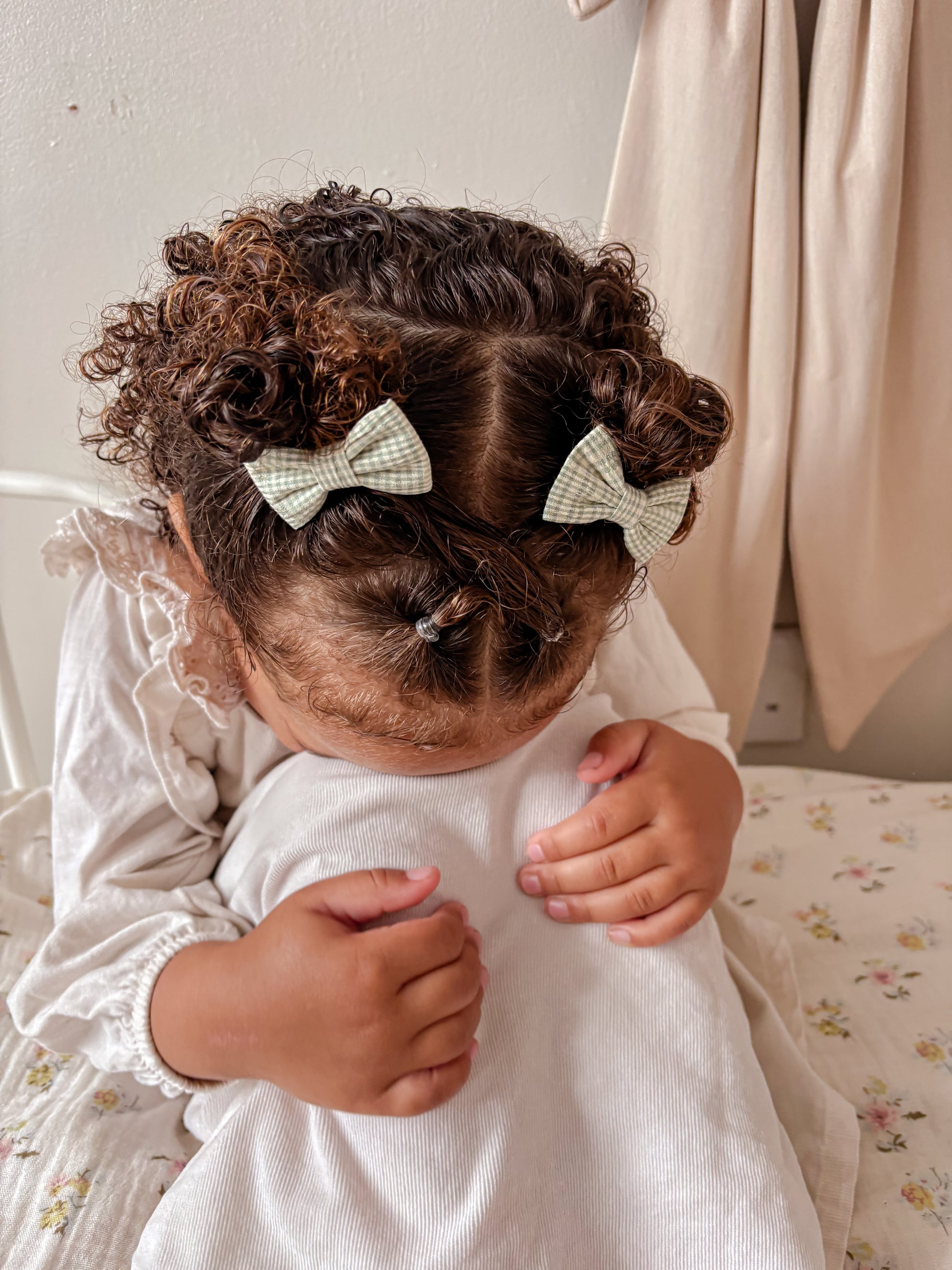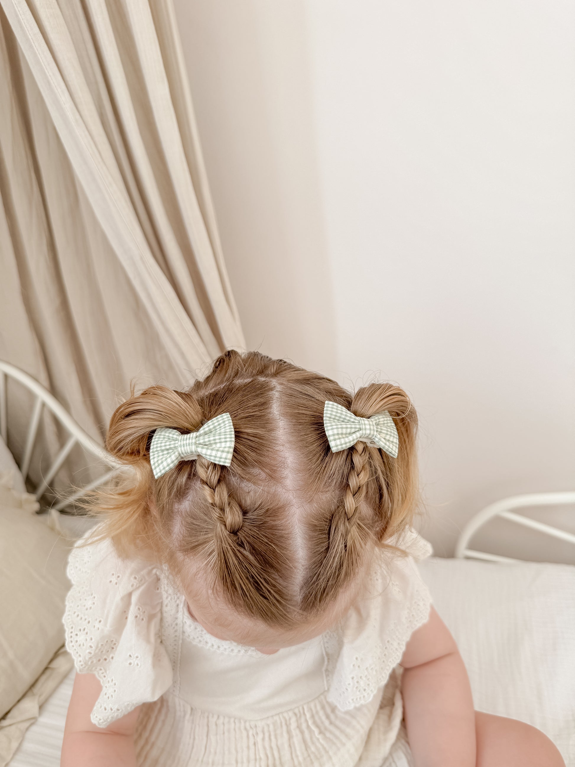 Our Petite Pigtail Bows are the perfect first bows for your little one. They are handcrafted on fully lined alligator clips, which are gentle against baby hair and skin. As the clips are lined, these is no metal or teeth exposed.