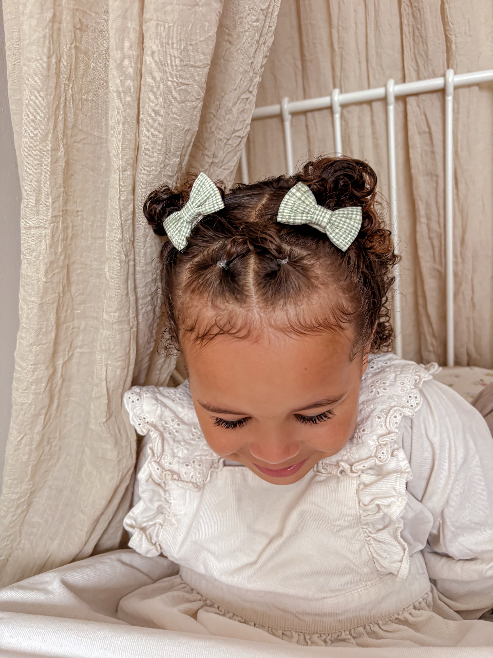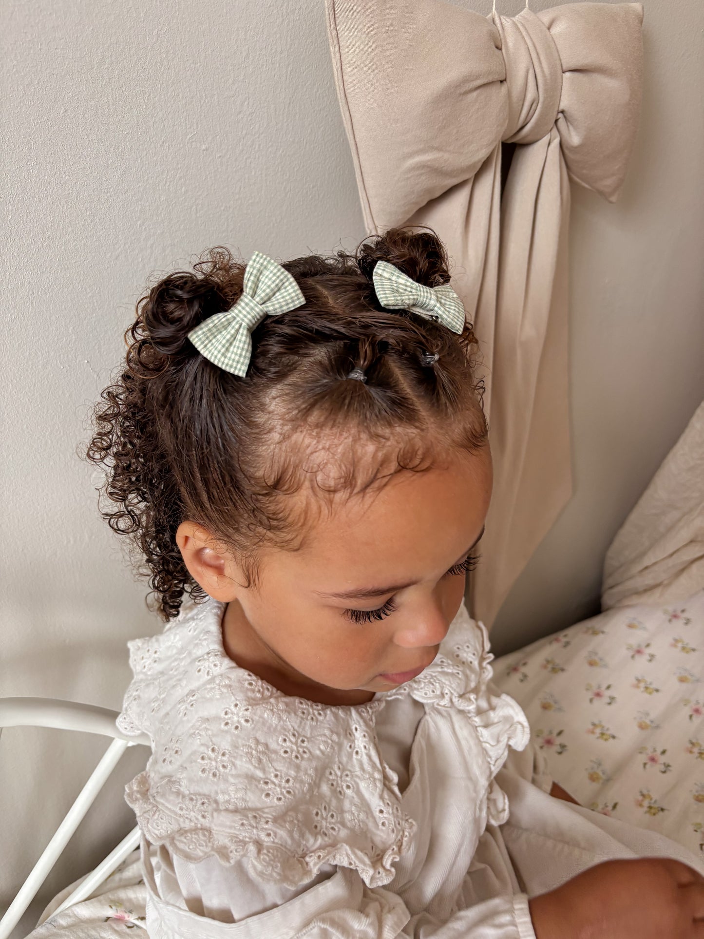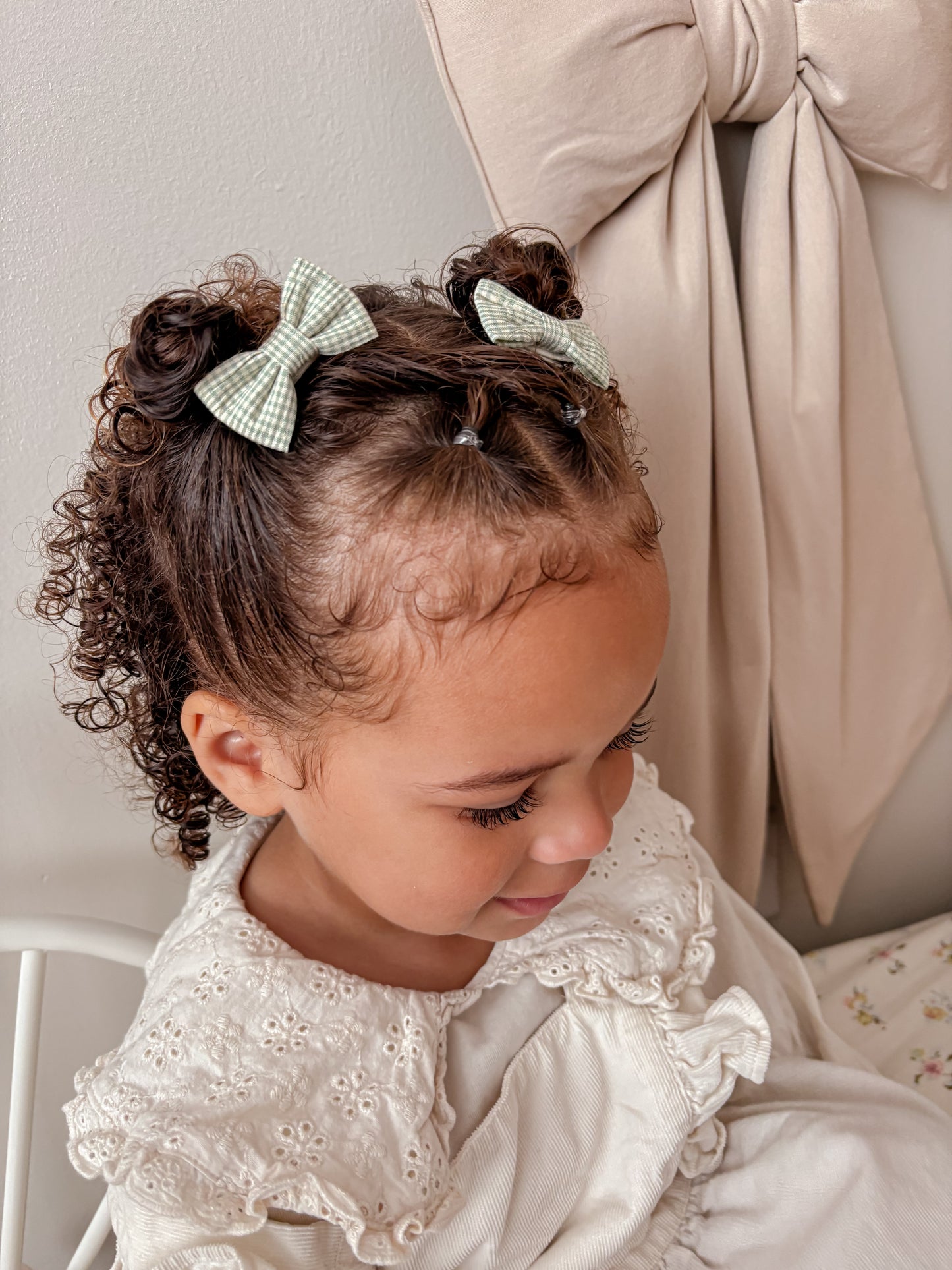Our Petite Pigtail Bows are the perfect first bows for your little one. They are handcrafted on fully lined alligator clips, which are gentle against baby hair and skin. As the clips are lined, these is no metal or teeth exposed.