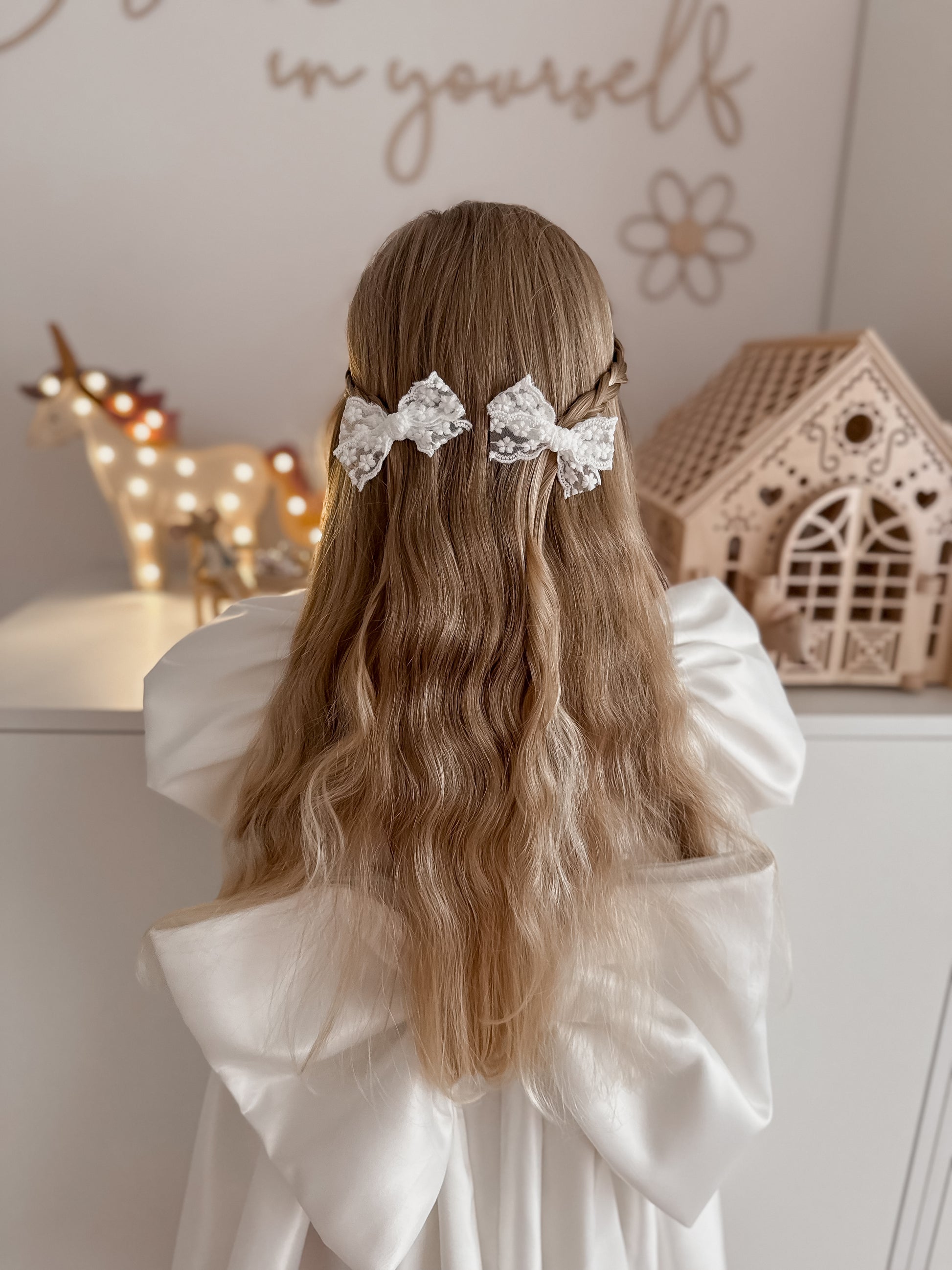 Sold as a set of 2 bows. Handcrafted on metal alligator clips (one left-facing and one right-facing)
