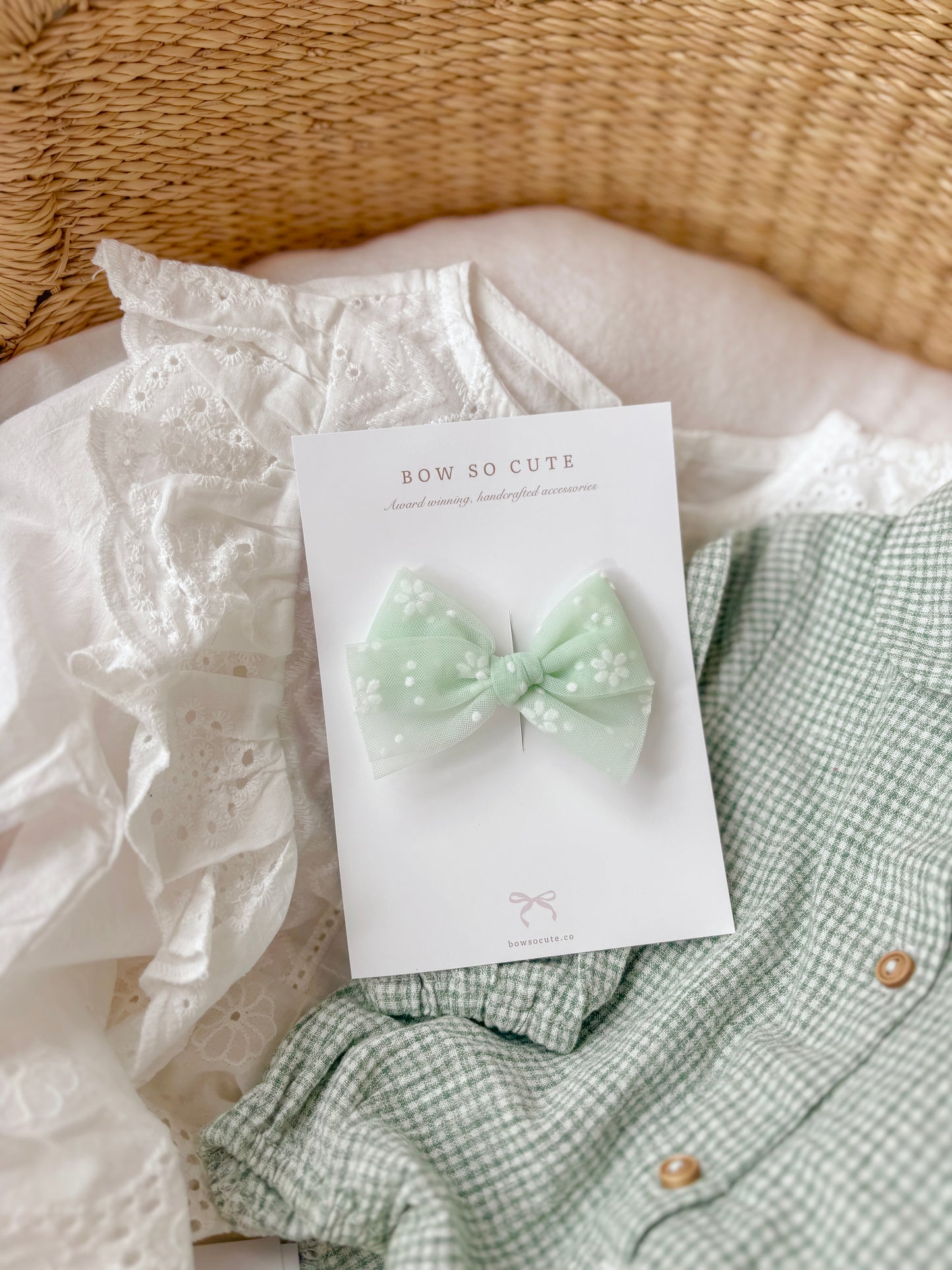 Tulle Bow | Matcha Green Floral (Clip or Headband)